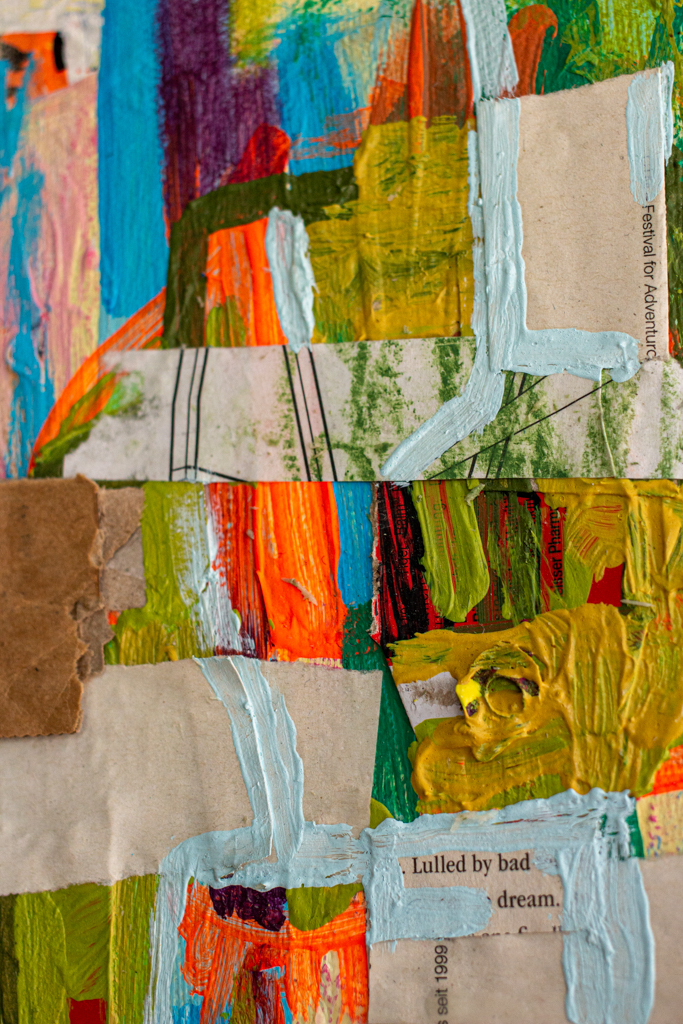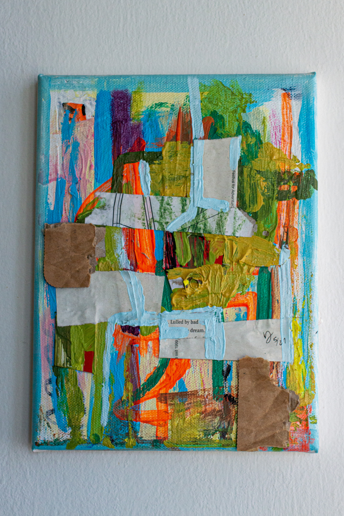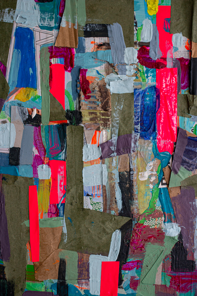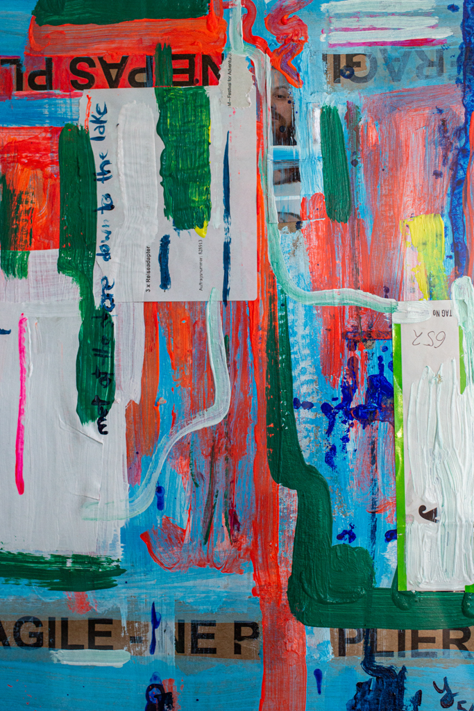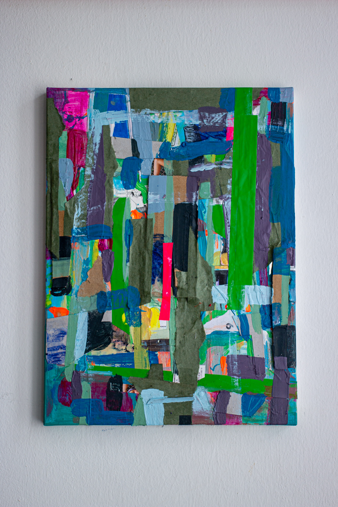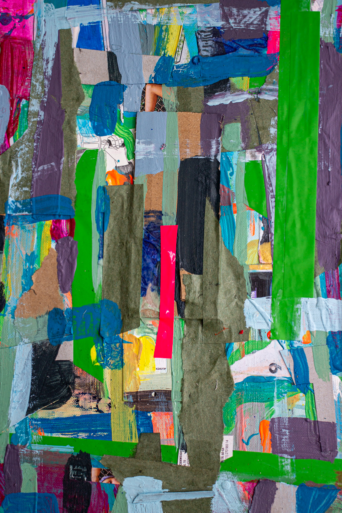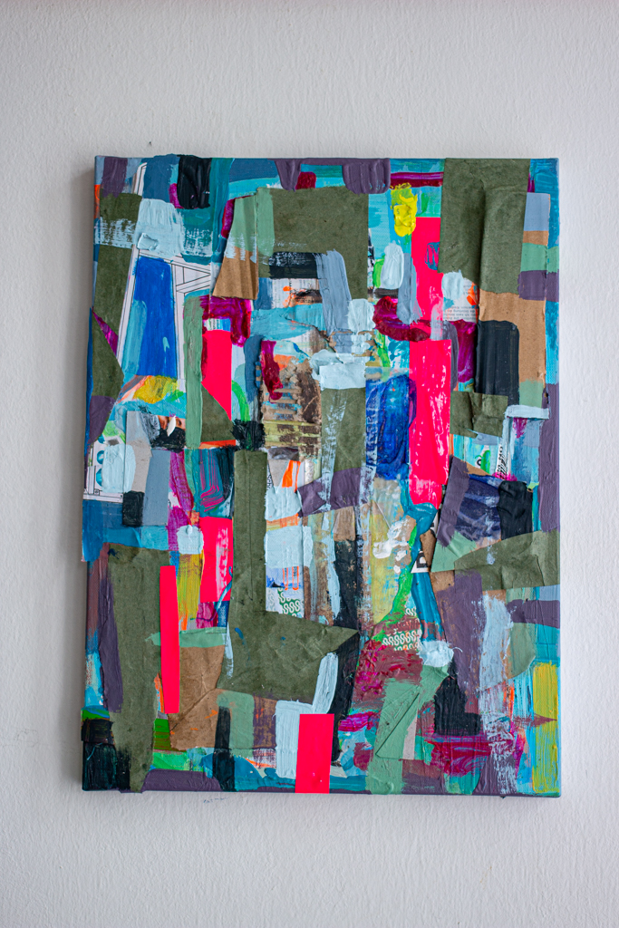 Acrylic, marker, prints, tape, cardboard. Selected works from 2019 – 2022.