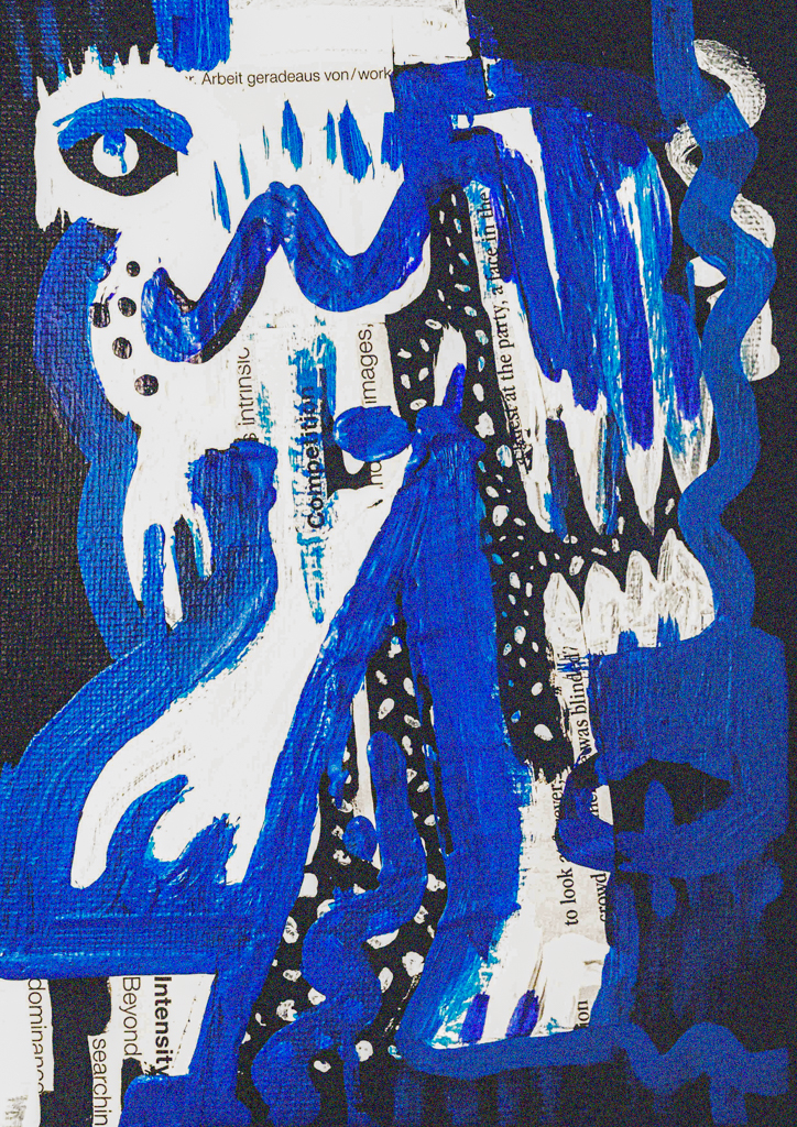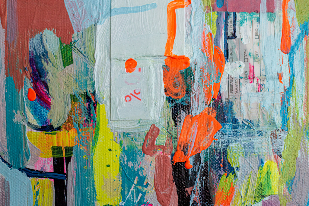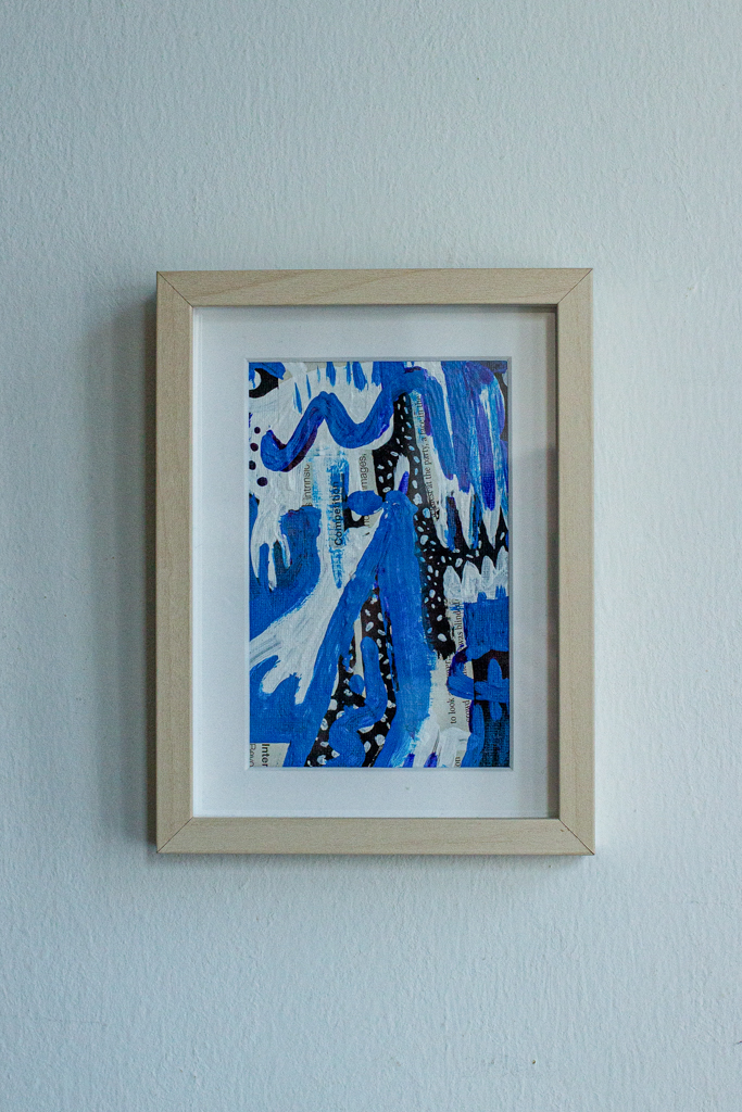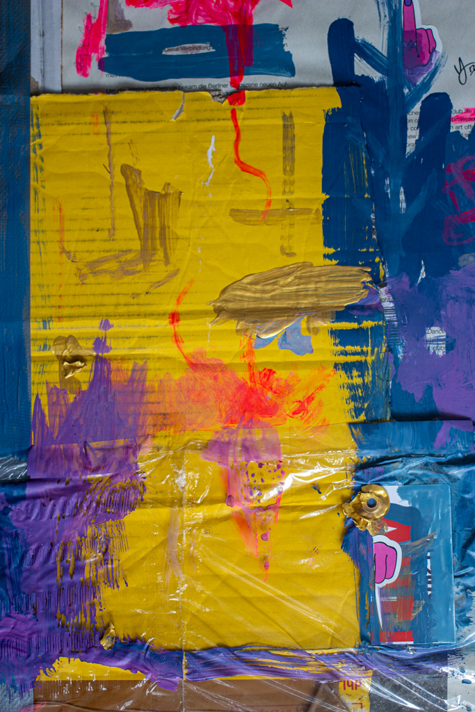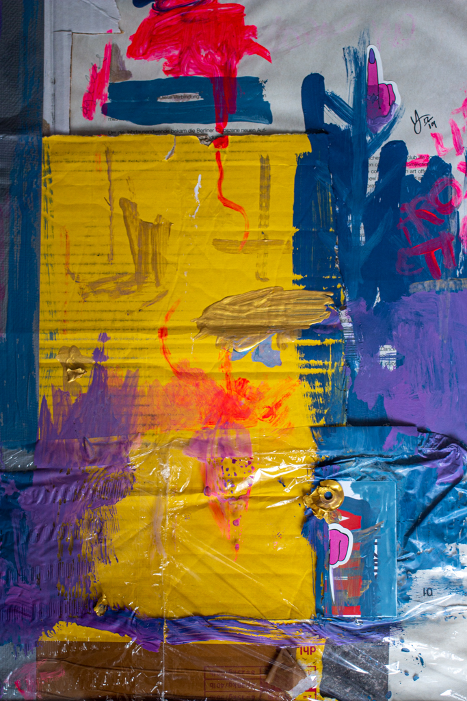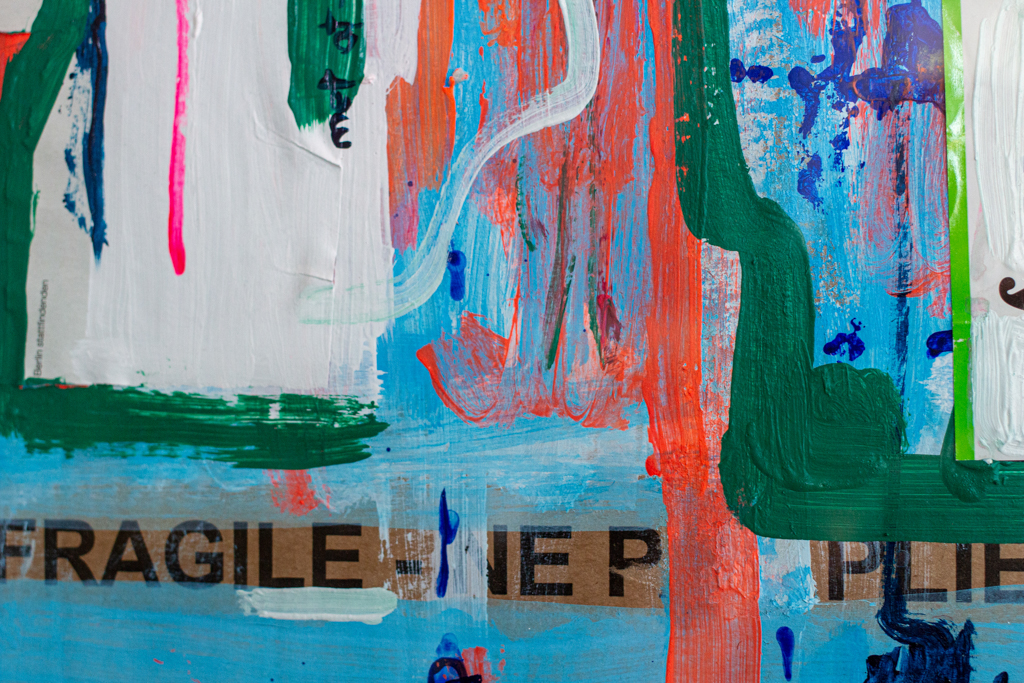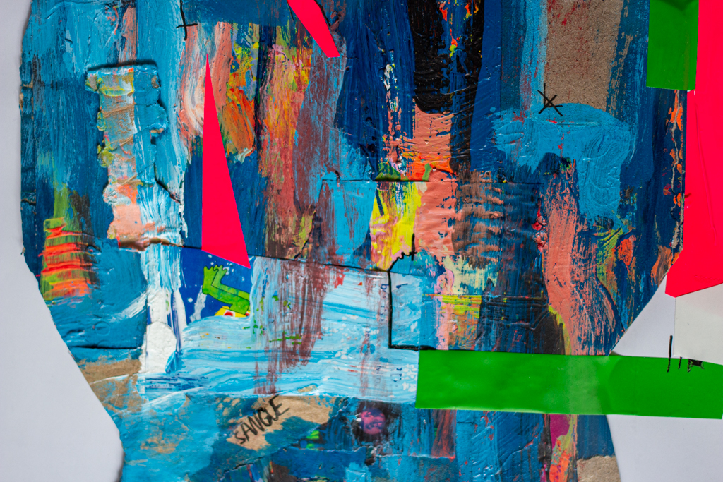 Acrylic, marker, prints, tape, cardboard. Selected works from 2019 – 2022.